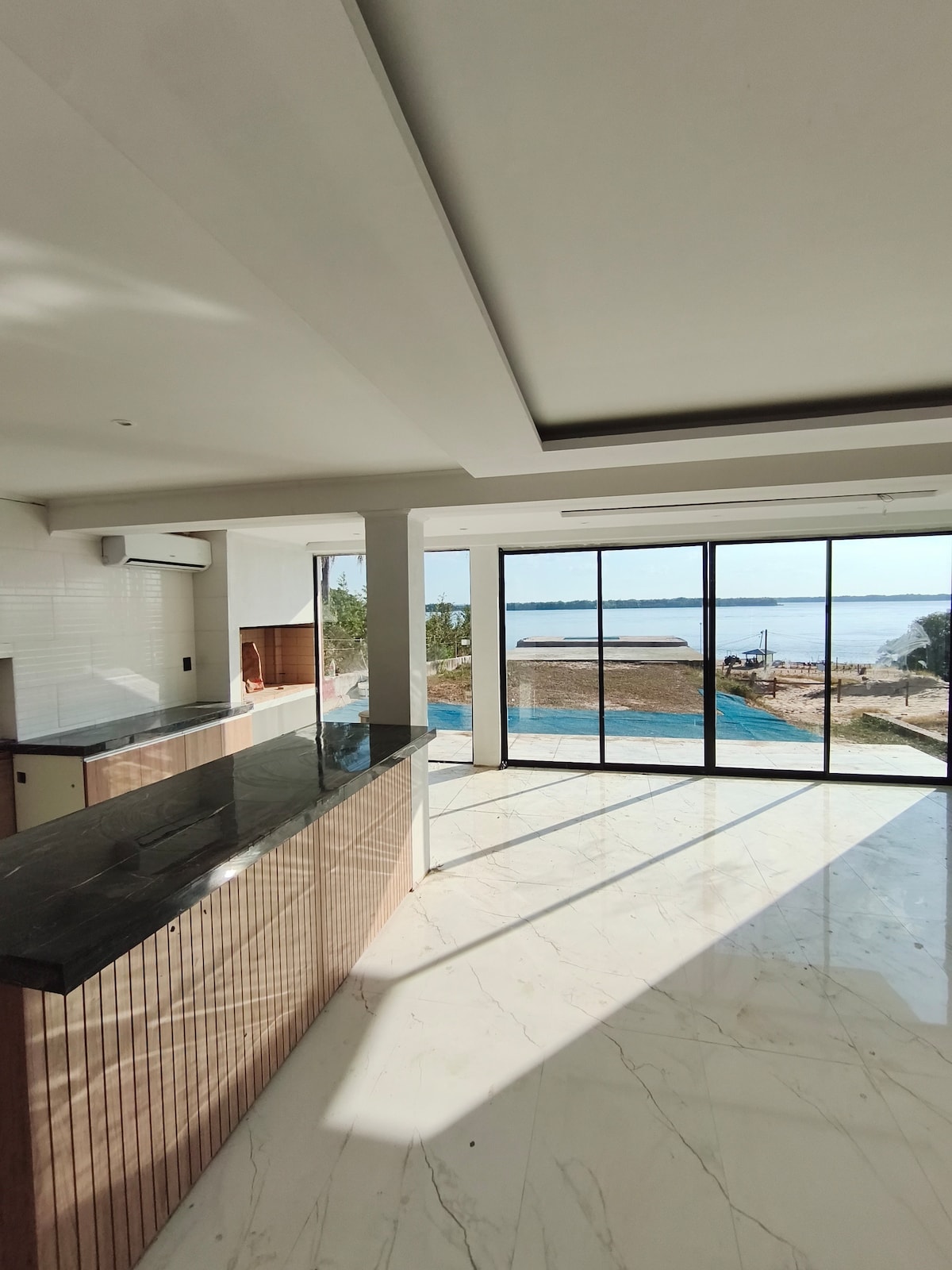 Rumah besar dengan kolam renang, menghadap sungai Paraná.