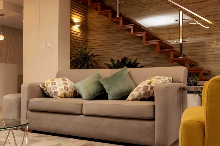 Relájate con toda la familia en este tranquilo hogar para hospedarse. Con accesorios de 1ra calidad que te brindan una comodidad única, un amplio jardín con terraza privado que te hará sentir mucha paz para desconectar.