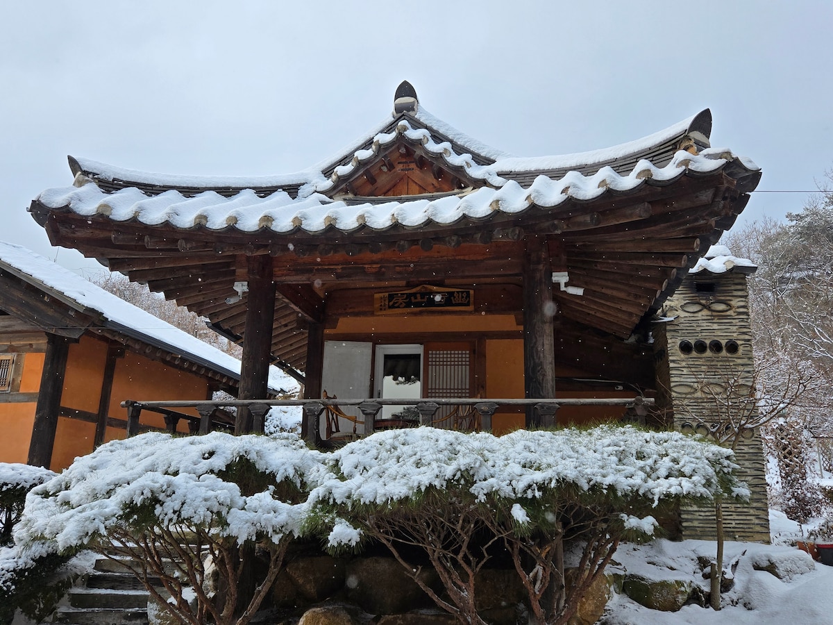 Ini adalah vila hanok satu bilik yang terletak berhampiran Lembah Baekdam. Taman ini diselenggara dengan baik, dan anda boleh barbeku di kawasan dek pada waktu petang. Anda boleh menikmati masa penyembuhan yang tenang dan selesa. Kami menyediakan ruang lubang api. Alamat: 43-35 Baekdam-ro, Buk-myeon, Inje-gun, Gangwon-do Barbeku luar: 2 populariti 30,000 won, dan caj tambahan akan dikenakan jika orang tambahan ditambah. Kami menyediakan lubang api atas permintaan selepas menggunakan gril barbeku. Jika anda hanya meminta kayu api, anda akan dikenakan caj 10,000 won. Daftar masuk: dari 15:00 Daftar keluar: 11:00 Haiwan peliharaan adalah dilarang. Anda boleh tiba di penginapan melalui navigasi. Jika anda tiba dengan bas antara bandar, kami akan menjemput anda di Terminal Bas Antara Bandar Baekdam-sa. Jika anda turun di silinder, sila telefon atau hantar mesej kepada saya. Saya akan jemput anda bergantung pada situasi. If you request a pickup to downtown Sokcho, there is a fee of 30,000 won one way. 50.000 round trip 30,000 untuk pengambilan dari Kereta Kabel Shinheungsa dari tempat penginapan Kawasan Rehat Marginal 30,000. Stesen Air Farmasi Fuchsia. 40,000 Caj akan dikenakan