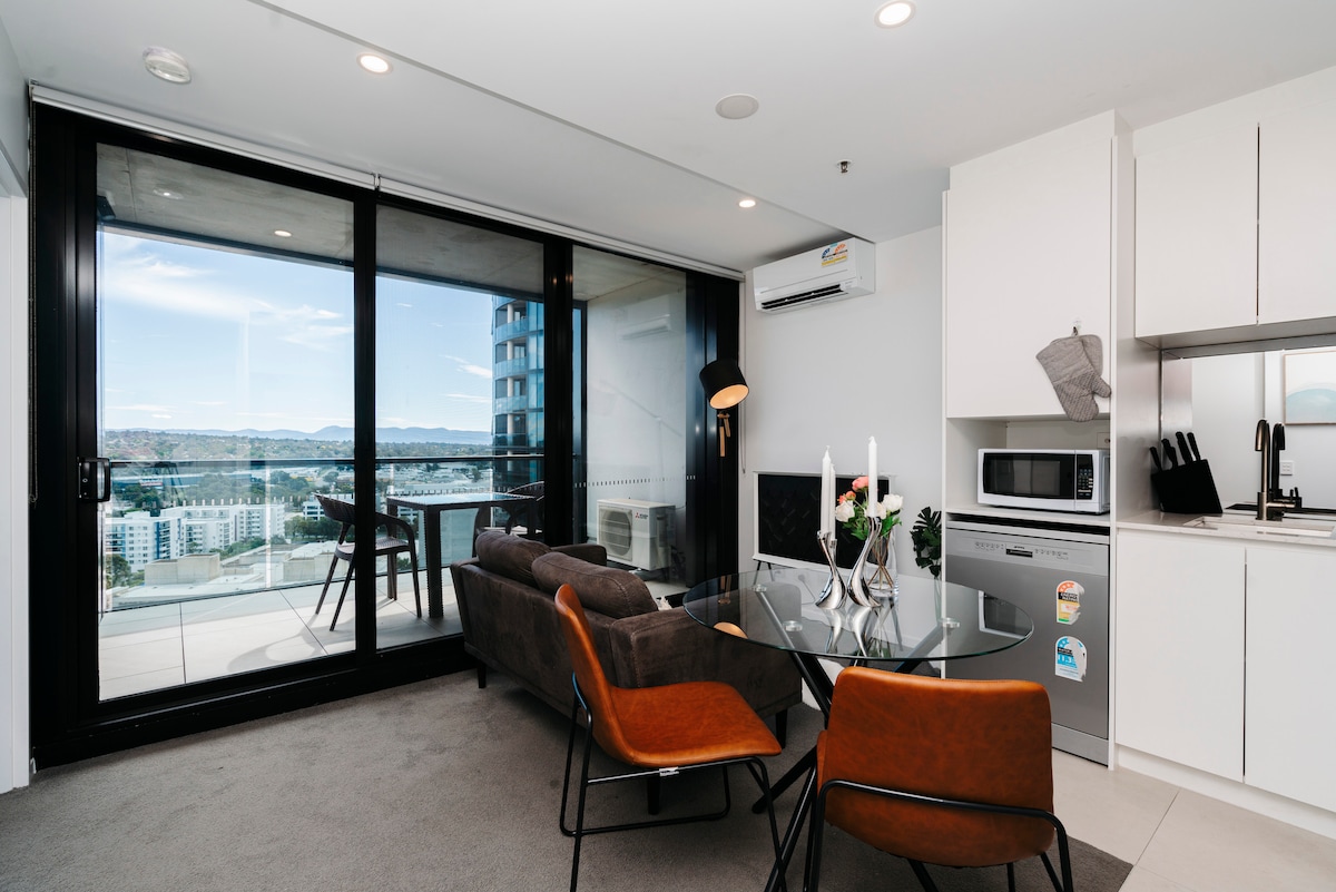 Pemandangan gunung 1BR apartmen berhampiran ANU @CBD dengan tempat letak kereta percuma/WiFi