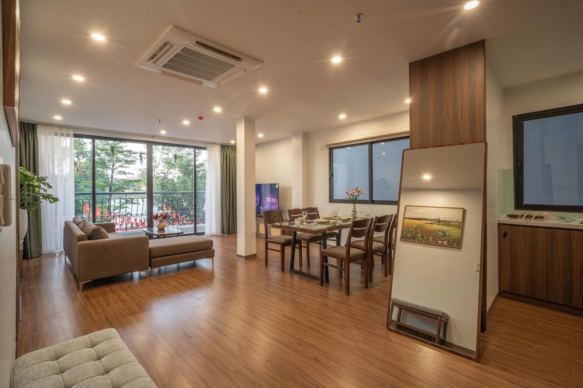Selamat Datang ke Apartmen Baharu! Ruang tamu yang ideal ini sangat tenang, dengan balkoni panjang untuk berjemur & pemandangan tasik. Kawasan apartmen 2 bilik tidur #115m2 adalah peribadi, ruang tamu sangat besar dengan banyak cahaya semula jadi yang menghubungkan kawasan dapur dengan peralatan dapur lengkap. Kemudahan: TV Pintar 65 inci, Sofa Lembut, Mesin Basuh/Pengering, Pendingin Hawa Siling 2 Arah Besar, Bilik Tidur Besar/Kecil dengan 02 meja...... Thelocationis bersambung dengan pantas ke Old Quarter, Mausoleum dan banyak tarikan.