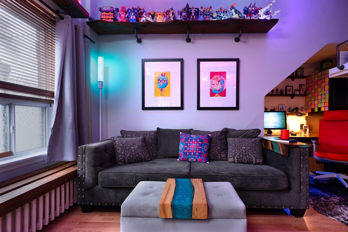 Welcome to The Toy Loft located in The Junction neighbourhood of Toronto. I believe comfort, lighting and nostalgia are key to a great experience in tiny home living. We provide the coziest items for your stay from bedding, towels, furniture and more. Change the atmosphere with your voice using Alexa and set the mood with 3 tiers of lighting from intimate, bright or wild vibes! Flash back to your childhood in a modern home museum of vintage toys from the 90's and 00's. @TheToyLoft