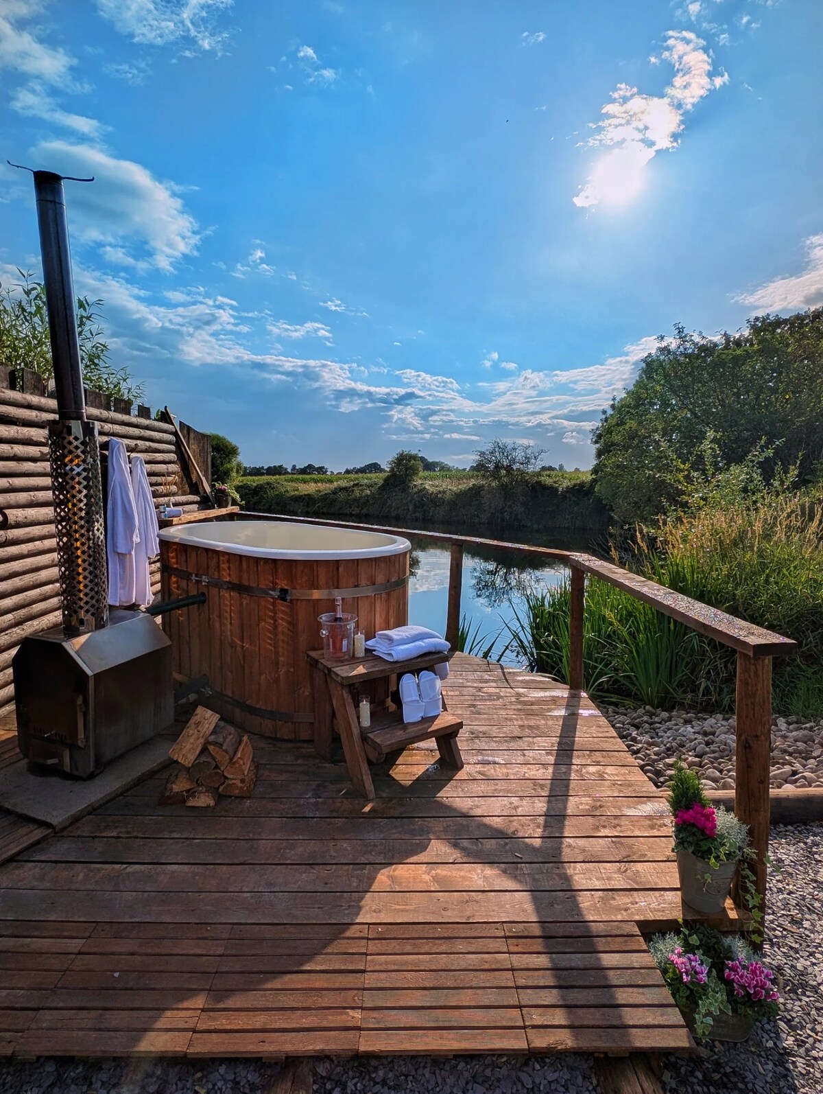 Anda tidak akan melupakan masa anda di tempat romantik dan tidak dapat dilupakan ini, penuh dengan pesona desa dan kemudahan yang luar biasa, kami pasti anda tidak akan mahu meninggalkan tempat ini! Terletak bersebelahan dengan tasik persendirian anda akan mendapat penggunaan kemudahan yang luar biasa termasuk tab mandi air panas yang dibakar balak Scandinavia dan akses kepada tasik untuk memancing dan berkayak. Nikmati tidur malam yang santai di katil super king yang dipesan lebih dahulu di bawah bintang-bintang. Ini adalah pelarian yang sempurna untuk membantu anda mematikan kehidupan yang sibuk.