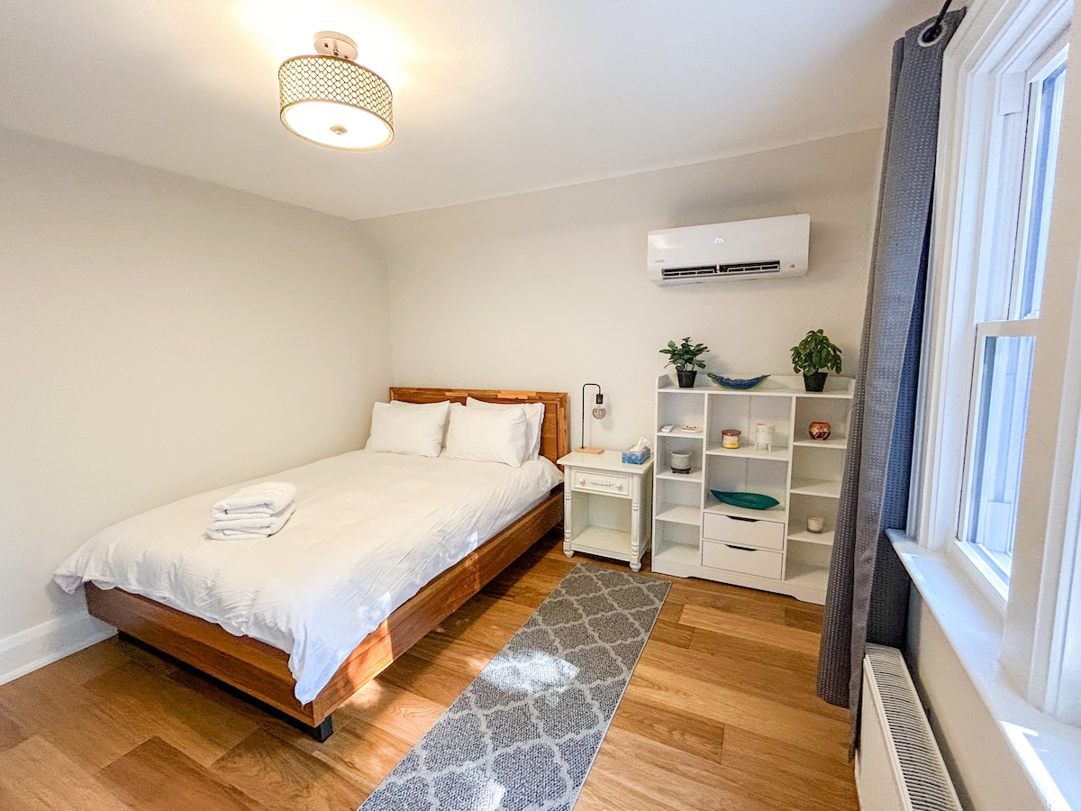 Daripada bata terdedah, karya seni asal, hingga bilik mandi peribadi yang besar dengan meja solek berganda, suite bawah tanah di rumah kami ini telah diubahsuai dan dihiasi untuk berasa seperti loteng. Katil double adalah jenama baru dengan tilam 16"yang pasti memberikan tidur yang nyenyak. Anda akan menemui TV pintar 42"baharu yang terletak di atas mantlepiece unik yang direka semula daripada piano tegak antik, serta dapur kecil dengan ketuhar perolakan/penggoreng udara, pembuat kopi Keurig, dan peti sejuk mini keluli tahan karat.