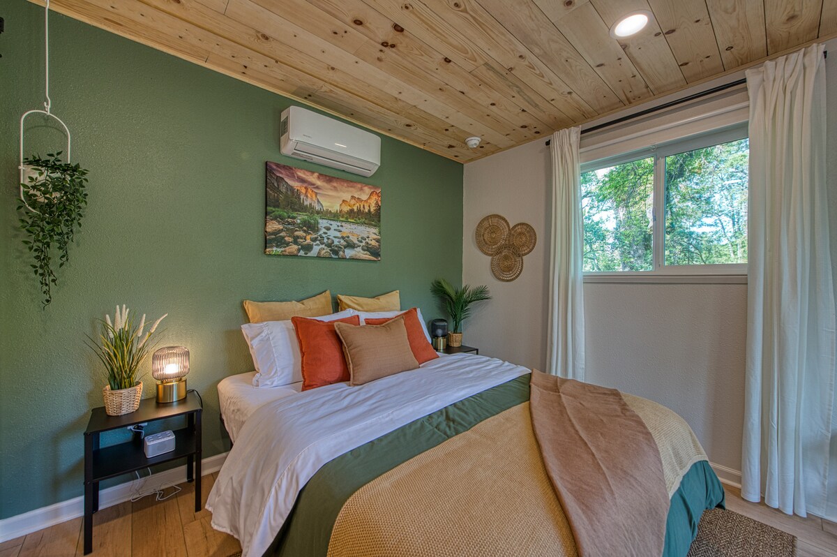 Nikmati suasana tenang suite moden ini, yang terletak di atas pokok. Renungi dinding penuh tingkap, dan lihat sekilas pandang hidupan liar yang minum dari Sungai Fresno. Rasa seperti anda terpencil di dalam hutan, tetapi dengan cepat membuat perjalanan anda ke lebuh raya, dan dalam pengembaraan anda ke Taman Negara Yosemite dan destinasi luar lain yang menakjubkan. Studio yang dilantik dengan murah hati ini mempunyai semua yang anda perlukan untuk perjalanan hujung minggu, atau kerja lanjutan dari mana-mana sahaja percutian. Hos dan penyenaraian mesra LGBTQIA+.