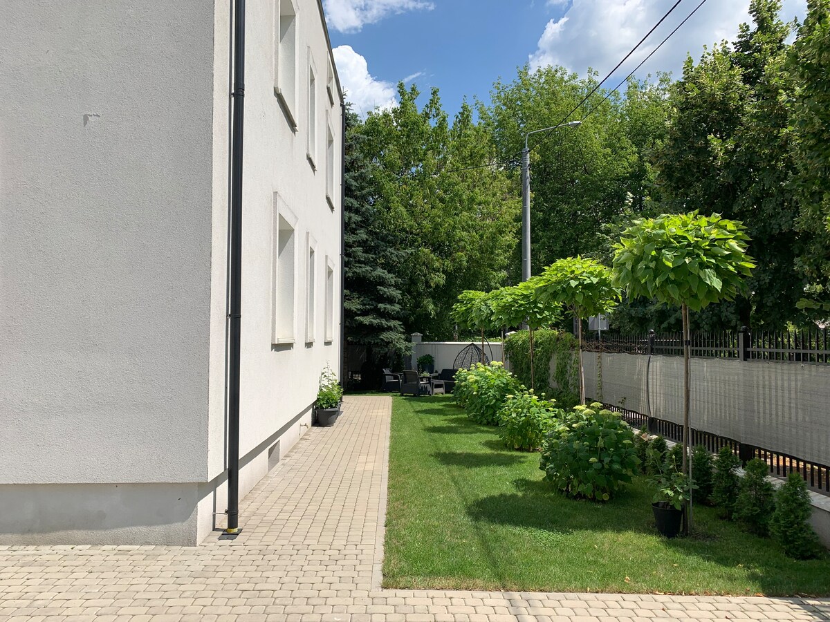 Apartmen yang selesa dan serba lengkap di bangunan baru. Ruang tamu dengan dapur terbuka yang dibahagikan kepada ruang makan dan ruang duduk. Bilik tidur mempunyai katil queen dan almari yang luas. Terdapat juga almari pakaian sebagai ruang simpanan tambahan. Terdapat kedai, restoran dan kafe di kawasan ini Peralatan: penyaman udara, pembuat kopi, cerek, seterika, papan seterika, mesin basuh Tunjuk arah dari Lapangan Terbang Chopin Teksi 20 minit Komunikasi 50 minit dari Lapangan Terbang Modlin 50 min teksi Komunikasi 120 minit