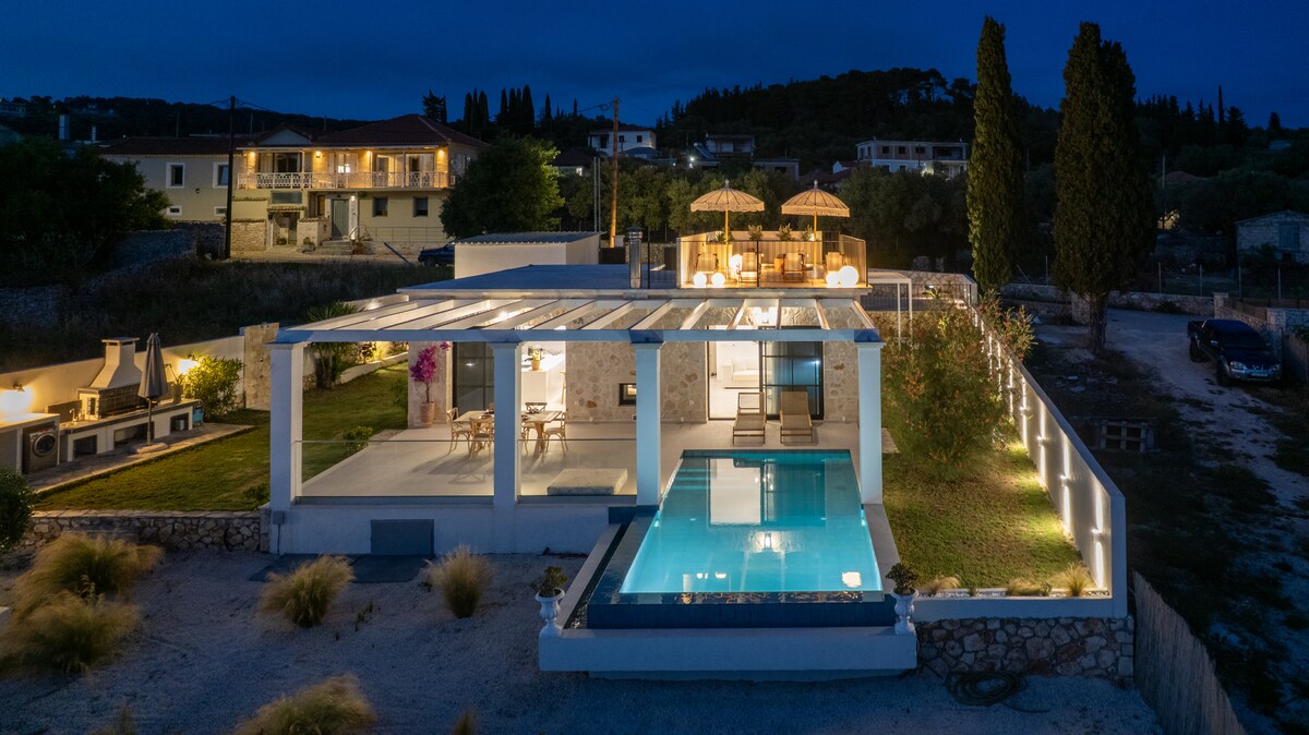 Orfos Villa - Contessa yang mewah menawarkan kolam renang infiniti persendirian dan serba lengkap untuk setiap keperluan anda. Vila ini telah dihiasi dengan teliti dengan kesungguhan yang tinggi untuk perincian menggunakan perabot buatan tangan dan tradisional untuk memberikan gaya yang unik dan standard keselesaan yang tinggi. Terletak di Agios NikolaÎżs di Volimes, salah satu lokasi yang paling indah di pulau ini dan menawarkan pemandangan ajaib ke atas perairan Laut Ionia yang jernih.