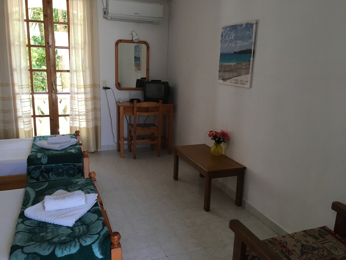 Enjoy a relaxing stay in our comfortable apartment, just a 5-minute walk from the beach. The apartment is ideal for couples and families looking for a quiet and pleasant holiday close to the sea. It offers a cozy space with all the essentials for a comfortable stay, making it a great base to explore the area and enjoy Zakynthos. Whether you want to relax on the beach or spend quality time with your loved ones, this apartment is a perfect choice.