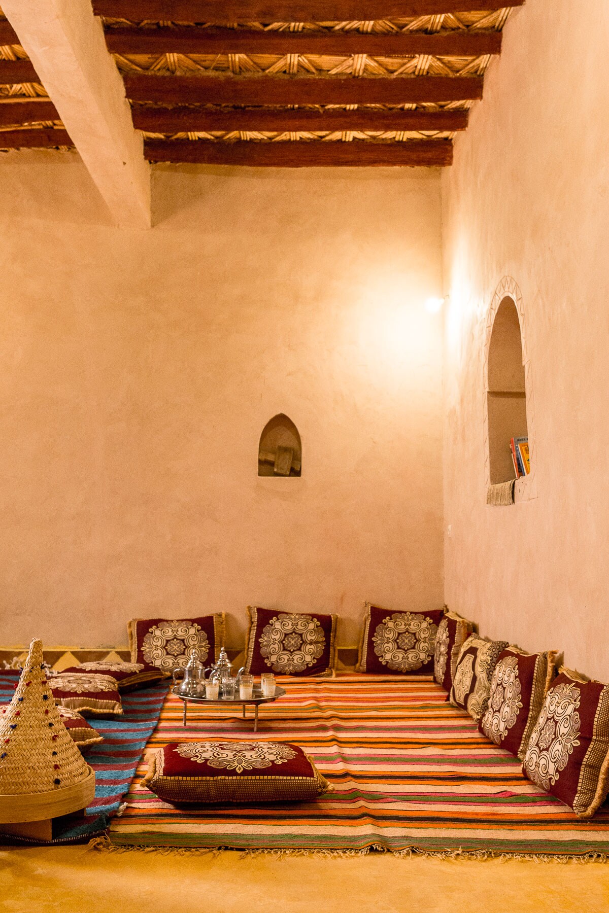 Bilik Bumbung (Utara) terletak di tingkat bumbung kasbah. Ia merangkumi: • Satu katil kelamin • Satu katil single • Bilik mandi berkongsi Pilihan yang ringkas dan selesa untuk tetamu yang menikmati akses atas bumbung dan kemudahan berkongsi semasa menginap di dalam kasbah bersejarah. Sila beritahu kami lebih awal jika anda ingin makanan disediakan semasa penginapan anda: • Makan malam: €12 seorang • Sarapan: 5€ seorang • Makan Malam & Sarapan: €15 seorang