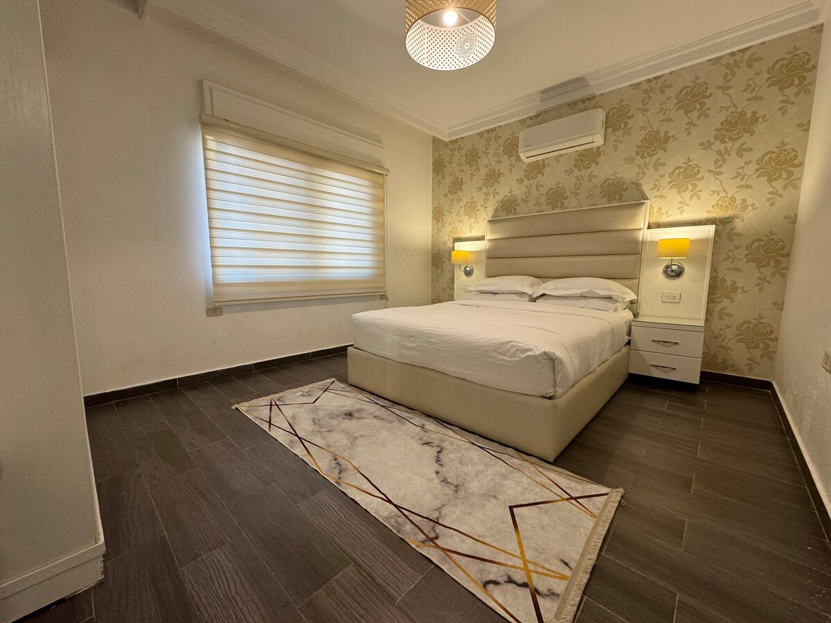 Kemewahan moden di pusat bandar Amman. Apartmen 3 bilik tidur, 2.5 bilik mandi yang luas ini boleh menempatkan hingga 8 tetamu dengan lantai marmar yang anggun, pencahayaan LED, dan ruang tamu terbuka yang bergaya. Sorotan termasuk dapur Jerman tersuai dengan peralatan premium, mesin basuh/pengering dalam unit, dan balkoni persendirian dengan tempat duduk untuk lima orang dan buaian. Dengan penyaman udara di setiap bilik dan WiFi berkelajuan tinggi, ia adalah penginapan yang sempurna untuk keluarga, pengembara perniagaan, atau kumpulan yang mencari keselesaan dan gaya.