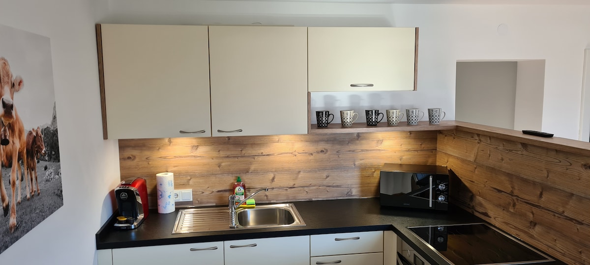 Apartmen percutian kami terletak di rumah ladang kami, ia mempunyai ruang tamu dapur, bilik tidur, bilik mandi dan tandas. Almdorf terletak di antara Saalfelden dan Maria Alm dan merupakan sebuah perkampungan pertanian kecil yang indah. Antara lain, kami ada ruang letak kereta untuk berkhemah, kedai semula jadi dan daripada susu kami, kami membuat keju krim yang lazat.