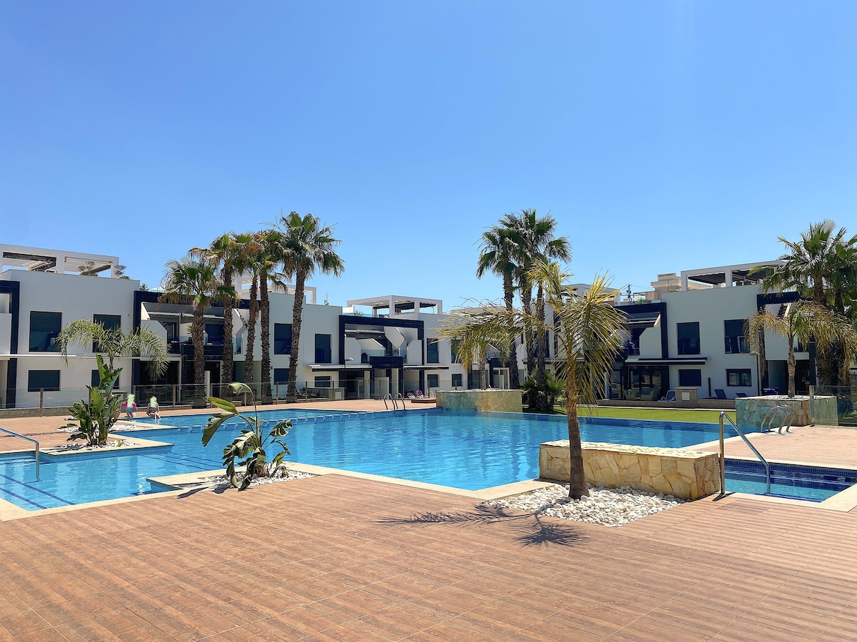 A modern, two-bedroom apartment with a spacious terrace in the heart of Playa Flamenca offers comfortable interiors, two bathrooms, a fully equipped kitchen, a washing machine, a hairdryer, a dishwasher, and air conditioning. Each bedroom and the living room feature a Smart TV. Complex amenities include pools - two of which are heated year-round — a jacuzzi, sauna, gym, playground, bar, and underground parking. Close to beaches, shops and restaurants. Perfect for an unforgettable stay!