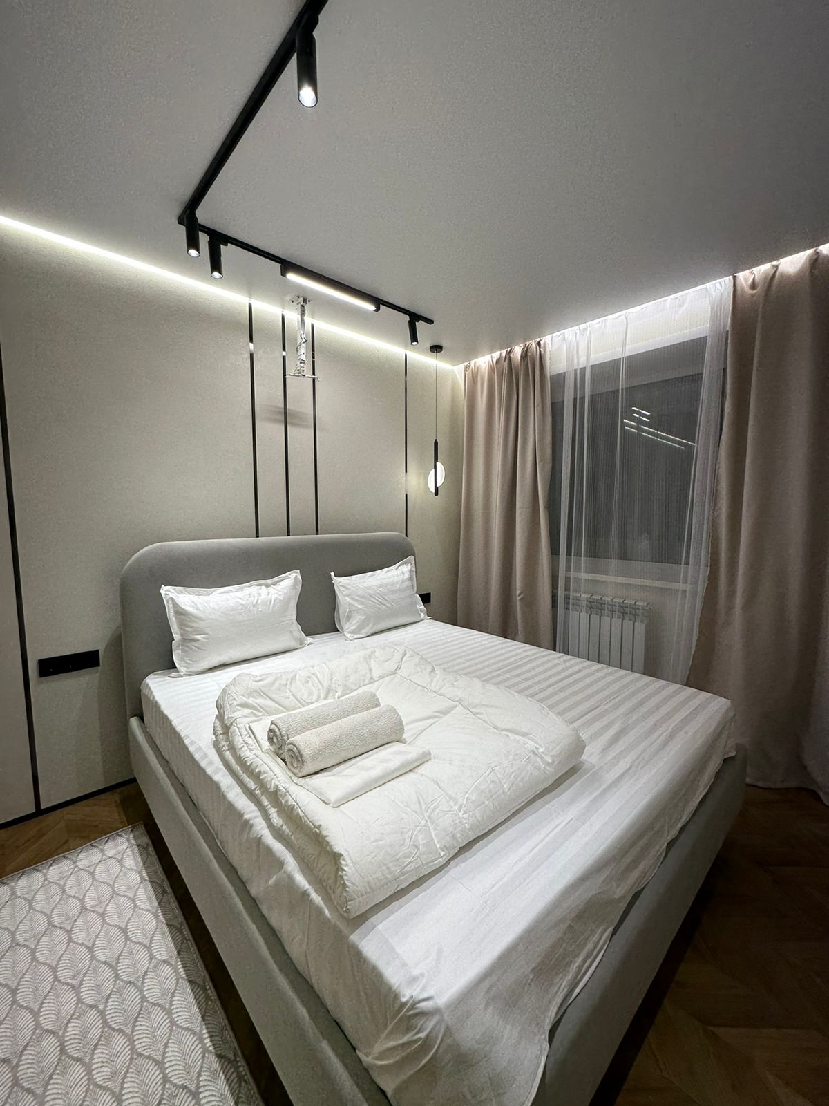 Apartmen dua bilik tidur yang nyaman, bersih sempurna, selesa dengan semua kemudahan yang diperlukan untuk bekalan rekreasi disewakan. Anda juga boleh mempunyai lokasi yang mudah Syarat daftar masuk: * tiada haiwan peliharaan * apartmen disewakan kepada tetamu dalam jumlah tidak lebih daripada dua orang, untuk 3 orang dikenakan caj tambahan * pada hujung minggu dan cuti umum umum, semak kosnya * deposit yang boleh dibayar balik sebanyak 10,000 tenge (tiada bonus - tiada deposit untuk pelanggan tetap) * daftar masuk selepas 14:00, daftar keluar sebelum 12:00 pada hari berikutnya.