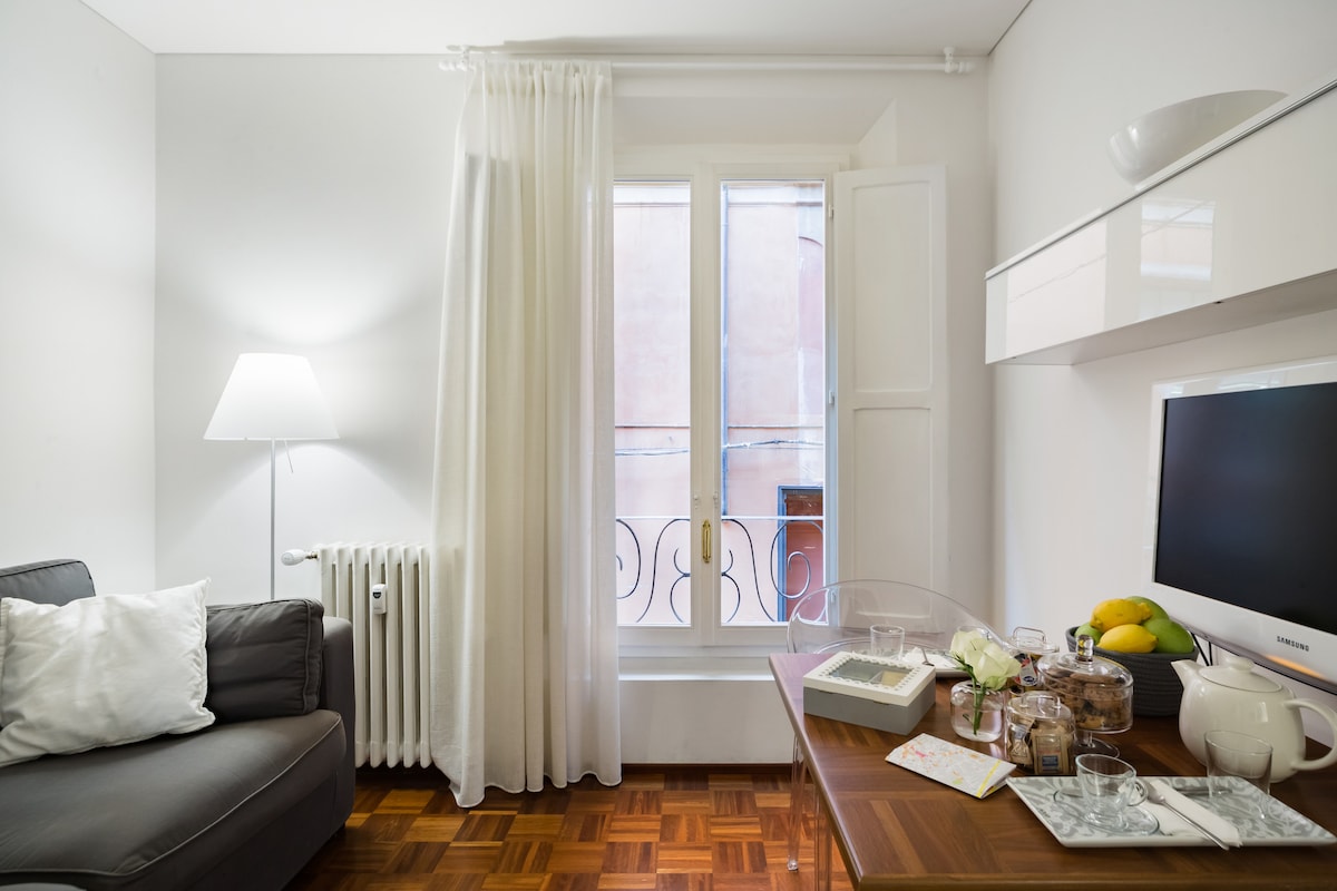 Studio yang cerah dan berperabot cantik dengan garisan ringkas dan nada pastel. Kemuncaknya ialah lokasinya: di tengah-tengah pusat: apartmen ini terletak di salah satu kawasan tertua dan menarik di kota, di tengah-tengah pasar makanan yang paling terkenal di Bologna, dikelilingi oleh banyak bar dan restoran kecil. Ia adalah kawasan yang penuh dengan "kehidupan Itali", dan pasar dibuka pada awal pagi, jadi kadang-kadang ada sedikit bunyi bising, seperti di semua pusat bersejarah Bologna.