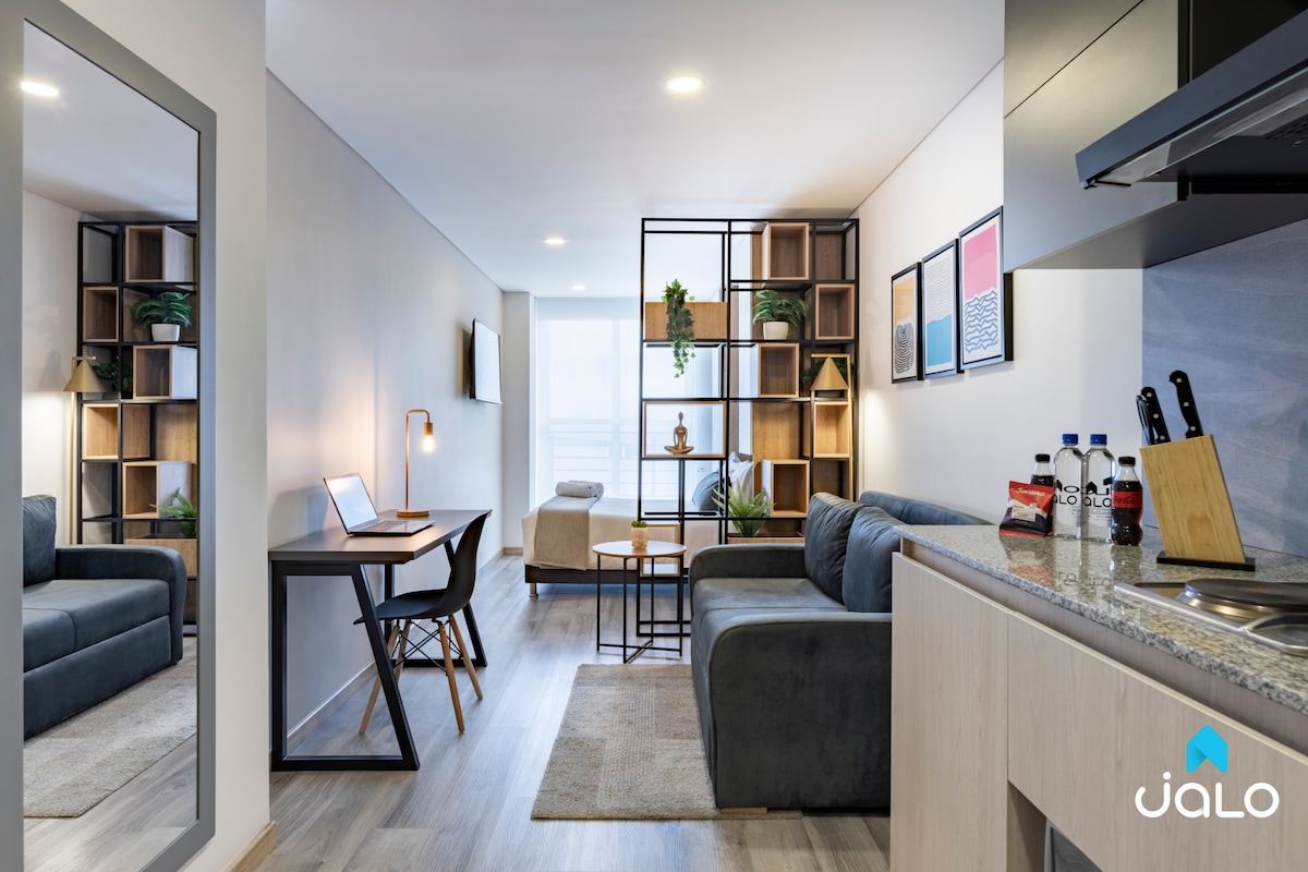 Terletak di kawasan terbaik di Bogotá. sesuai untuk perjalanan perniagaan, percutian dan keluarga kecil yang ingin menginap di apartmen studio. Anda akan berada dalam jarak berjalan kaki dari tiga pusat membeli-belah utama, restoran terbaik, gimnasium, pasar raya, bar, kelab, taman, kedai kopi, hospital dan stesen trasnport awam di bandar. Apartmen studio baharu ini menawarkan keselamatan penjaga pintu 24/7 teres panorama di tingkat atas bangunan, jakuzi dan pemandangan hadapan ke salah satu taman utama Bogota, el Virrey