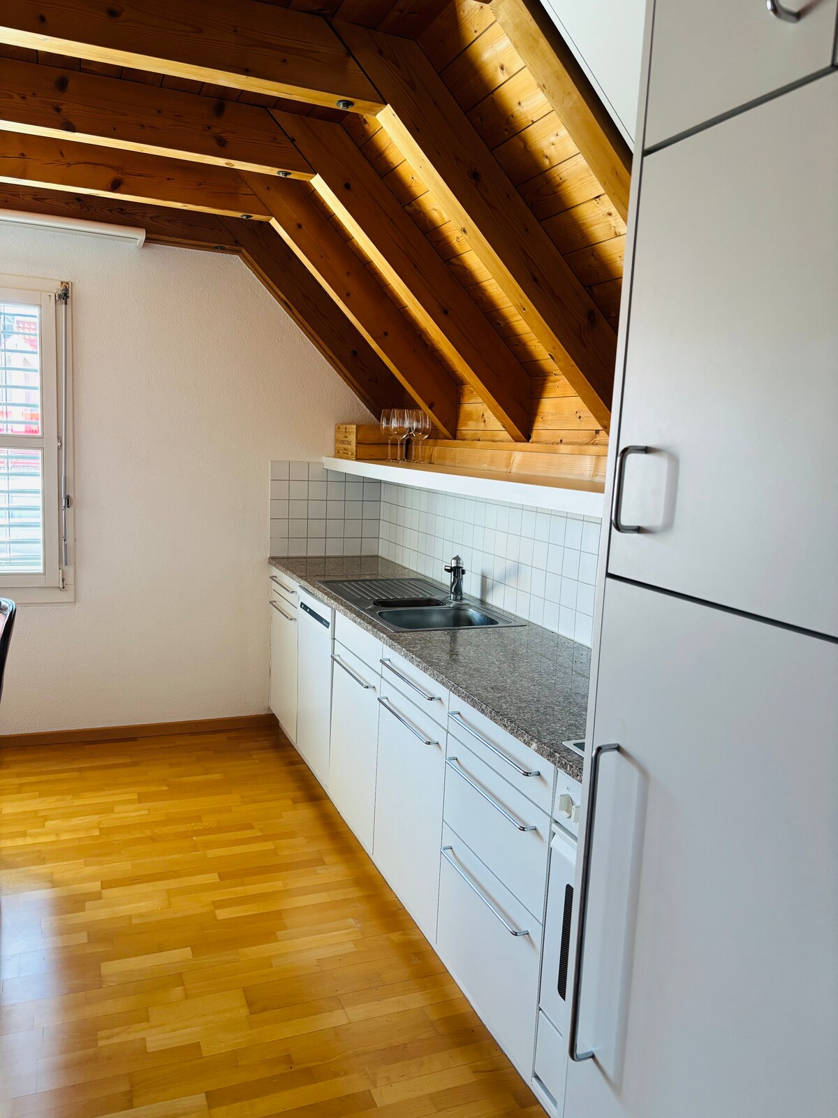 Chalet Suite terletak di tingkat 6 bangunan lama yang tersenarai dan telah diubah suai sepenuhnya di Universitätsstrasse 11 – betul-betul bersebelahan dengan ETH, Universiti Zurich dan Hospital Universiti. Reka bentuk alpine bergaya, tiga bilik tidur berkualiti tinggi, ruang tamu/makan yang cerah dengan pendiangan dan dapur V-ZUG moden. Akses kepada teres bumbung besar rumah ini dengan pemanggang dan pemandangan Tasik Zurich. Daftar masuk sendiri melalui kunci kod. Sesuai untuk keluarga, kumpulan dan cendekiawan yang berkunjung.